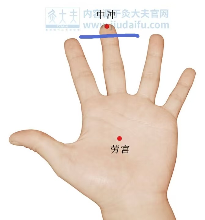 中冲 Zhongchong (PC 9)--wake-promoting acupoint